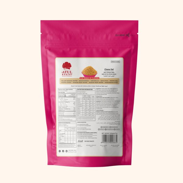 Chickpea Splits (76%), Edible Veg. Oil, Chilli Powder, Iodized Salt, Black Salt, Coriander, Turmeric Powder, Dry Mango Powder, Fennel, Cumin, Bay Leaves, Cinnamon, Stone Flowers, Nutmeg, Mace, Clove, Black Pepper and Acidity Regulator (E330).