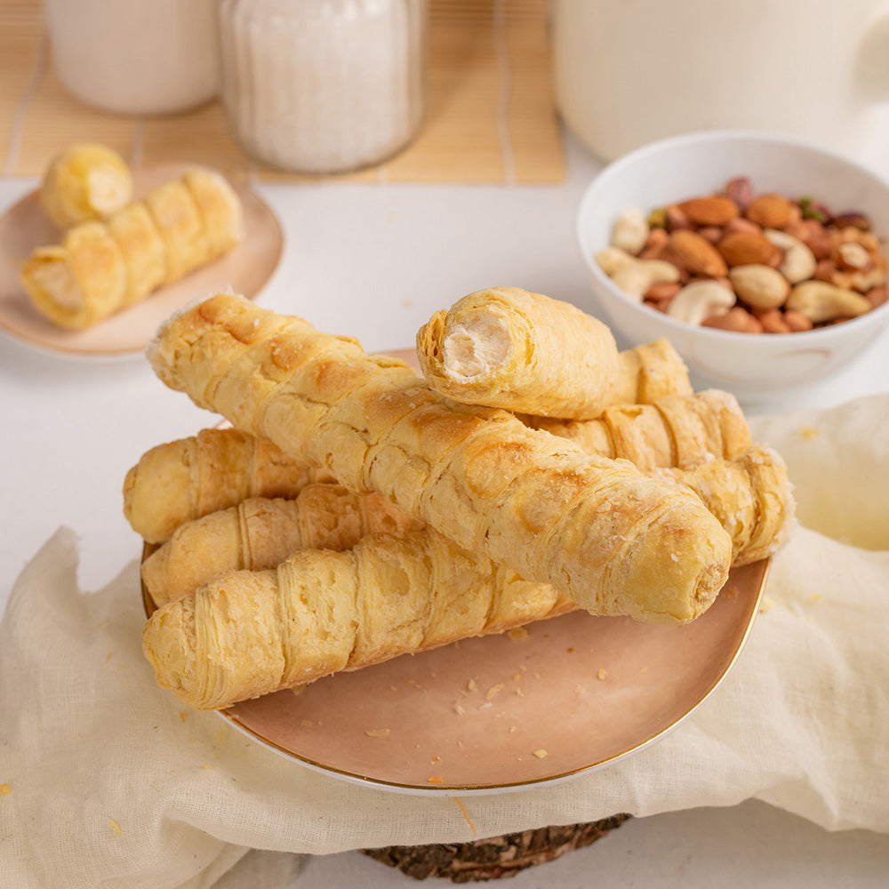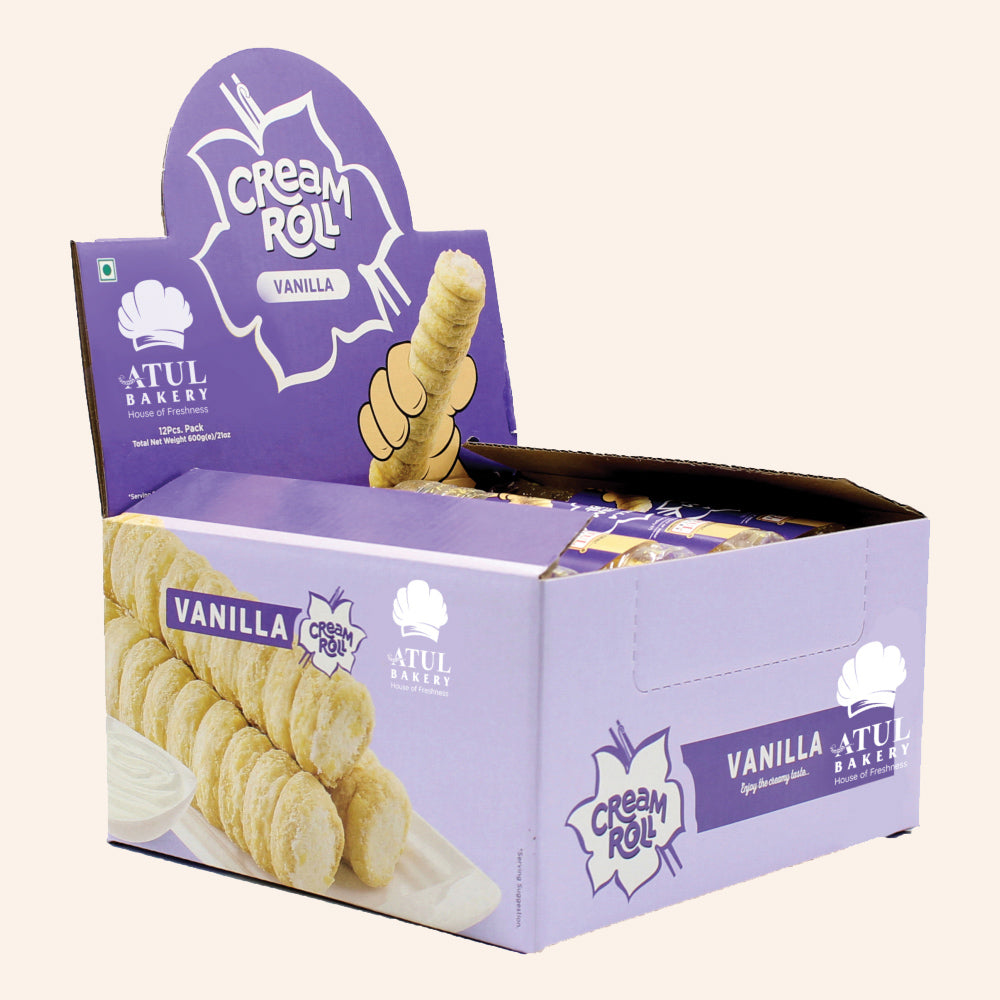 Soft and creamy vanilla flavored sponge cake, rolled with a rich cream filling.